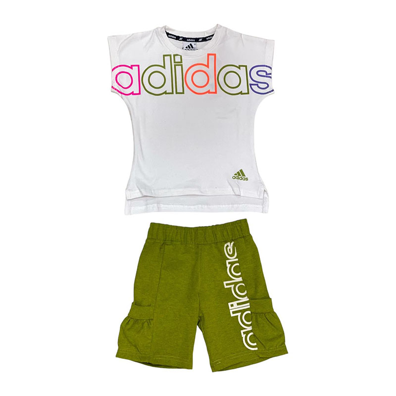وشورت اخضر غامق adidas بيجامة تيشرت نص كم ابيض