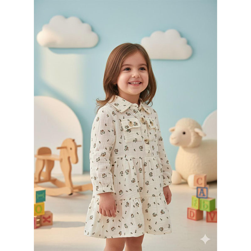 التصنيف: فستان كتان خريفي لون بيج مطبوع به ورد بيج في أخضر