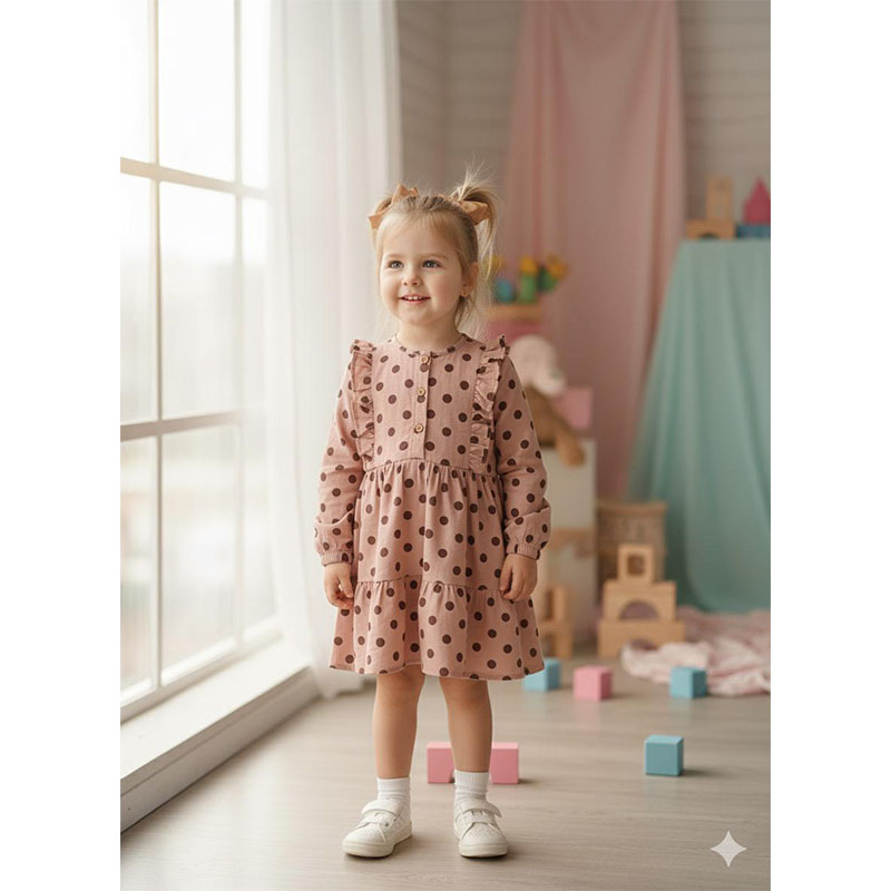 فستان بناتي صيفى كت بيج منقط اسود بحزام