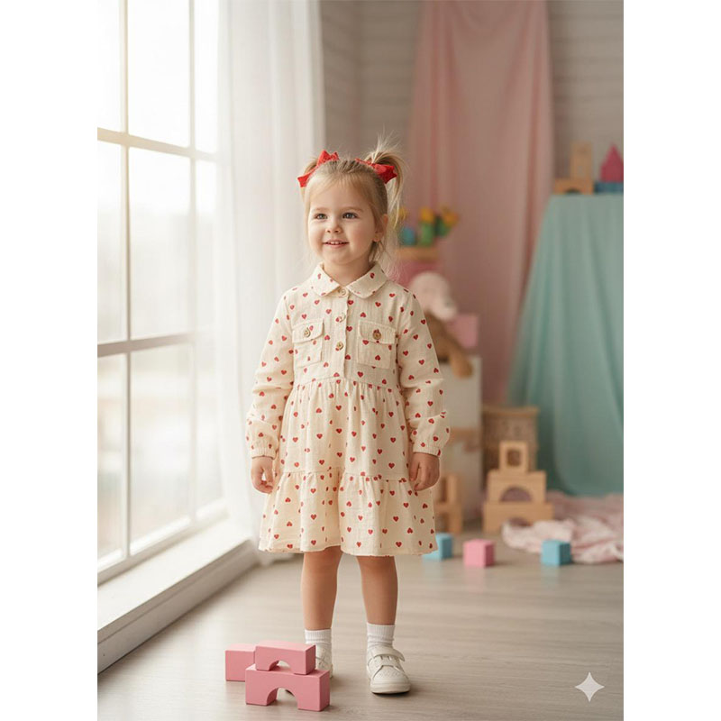 التصنيف: فستان كتان خريفي لون بيج مطبوع به قلوب حمراء