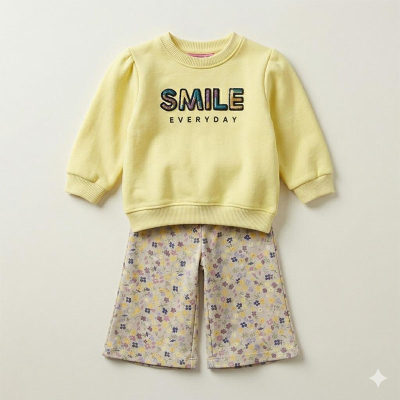 التصنيف: طقم بناتي شتوي سويت شيرت لون أصفر وبنطلون جينز مشجر