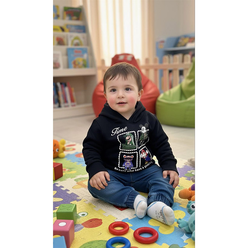 سويت شيرت أولادي ميلتون اسود به رسومات بكابيشو