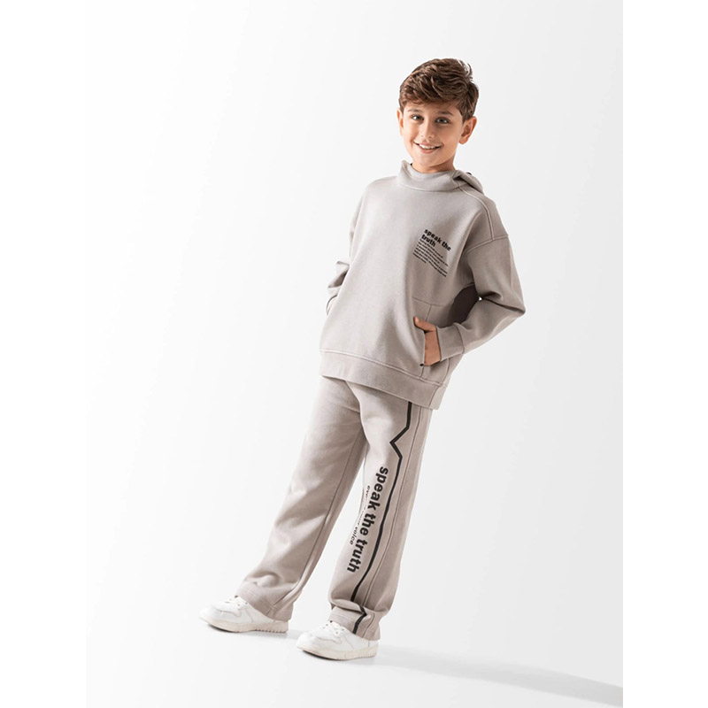 ترنج أولادي سويت شيرت بيج غامق بكابيشو وبنطلون ميلتون بيج