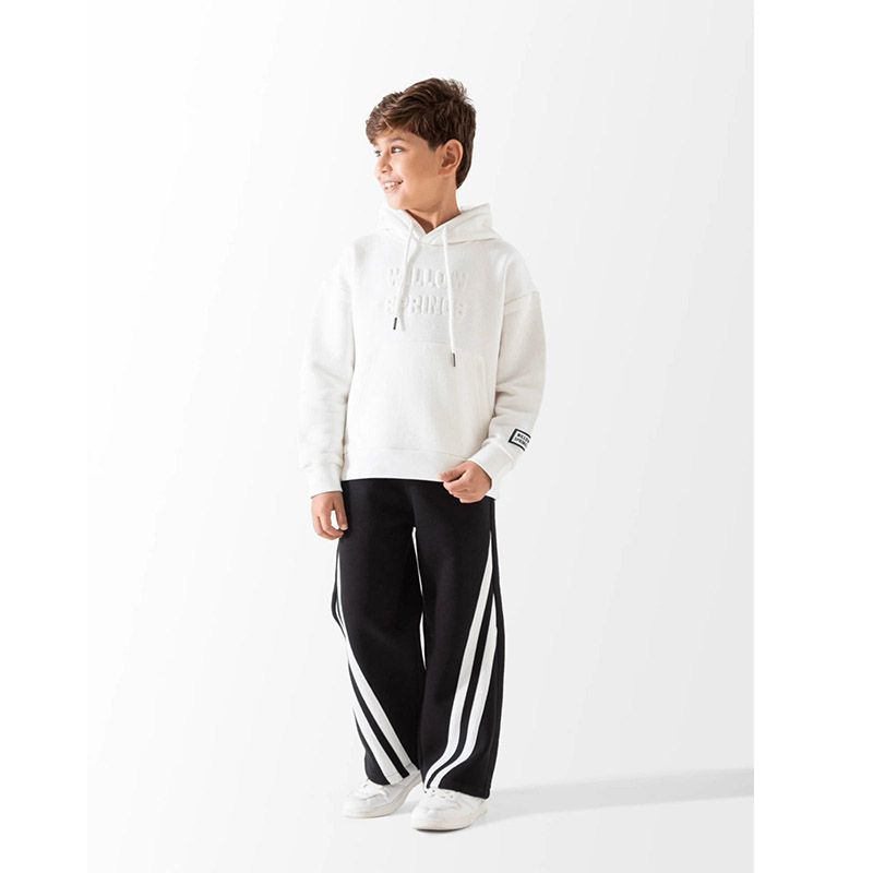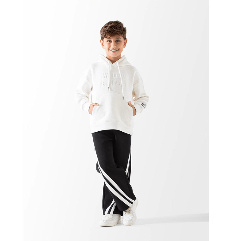 ترنج أولادي سويت شيرت ابيض بكابيشو وبنطلون وايد ليج ميلتون اسود