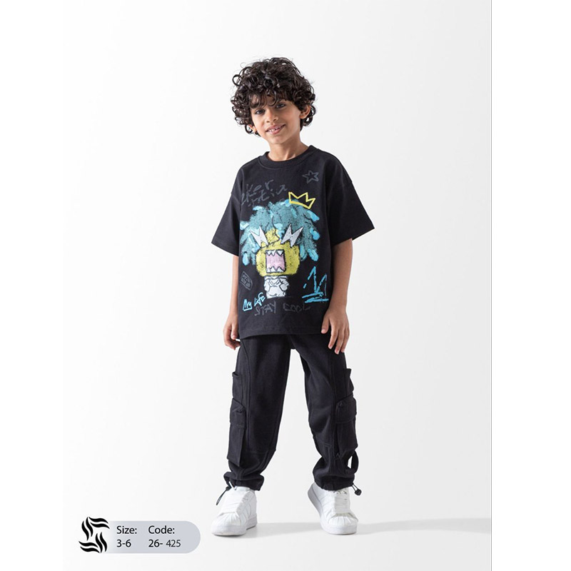 ترنج أولادي صيفي تيشرت نص كم اسود وبنطلون ميلتون اسود