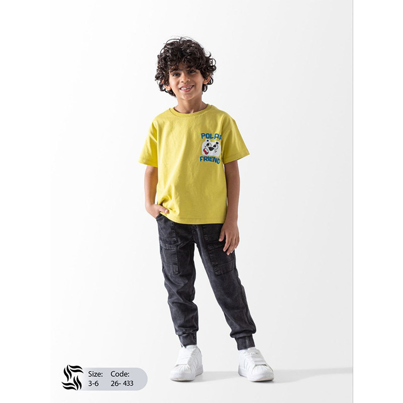 ترنج أولادي صيفي تيشرت نص كم اصفر فاتح وبنطلون ميلتون اسود