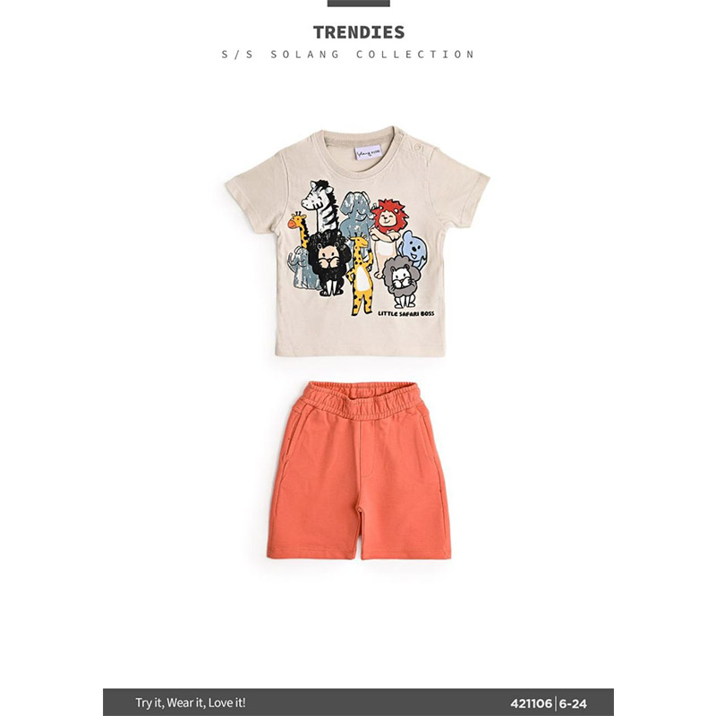 ترنج أولادي صيفي تيشرت نص كم بيج فاتح وشورت اورانج فاتح